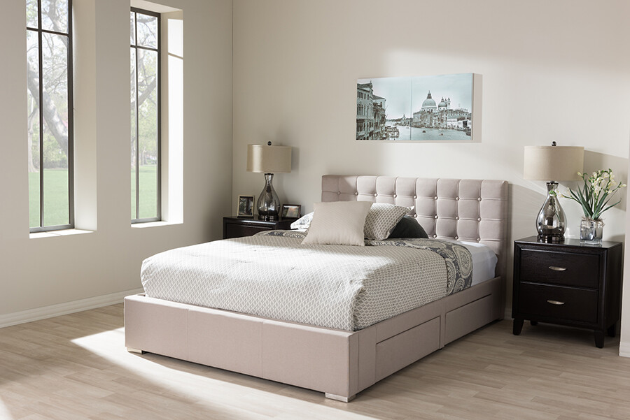 Baxton Studio Alinia Light Beige King Platform Bed-146 ... from images.homedepot-static.com