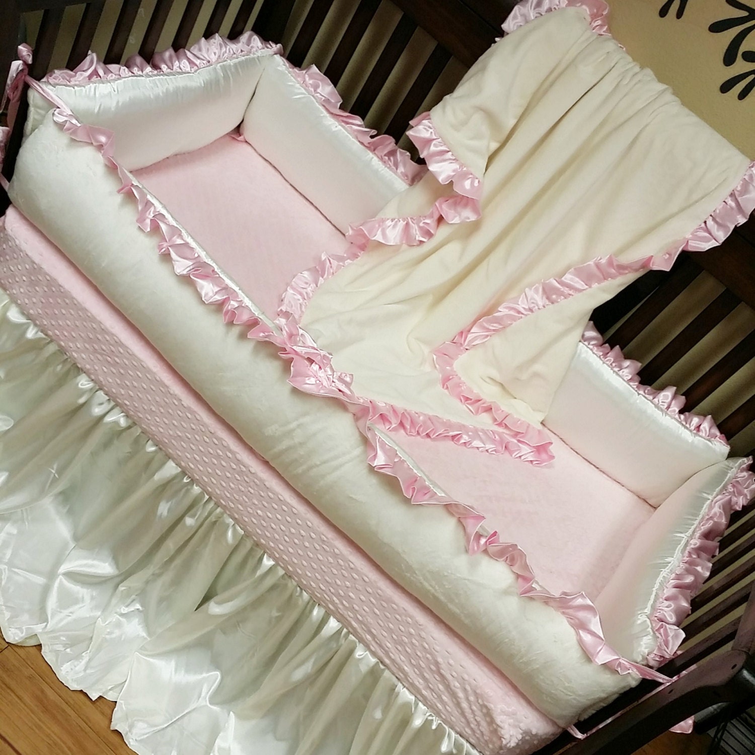 The bedding includes decorative canopy and classic bows for that traditional appearance. Pretty as a picturethis dreamy round crib bedding set is made of the softest white pique adorned with lovely gingham seersucker ruffles. If you are decking out a neutral nursery for your little one then we hope you'll find the perfect gender neutral crib bedding right here. Sears has the best selection of crib bedding sets for your little one.