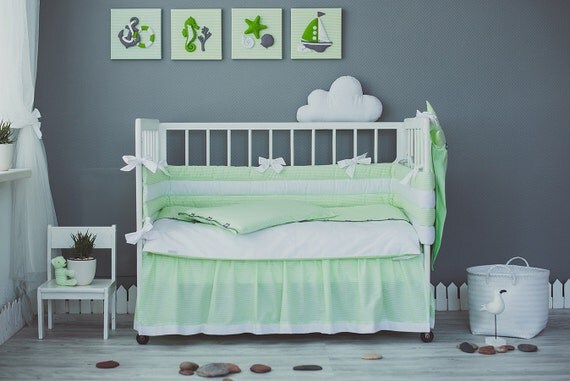 Coastal Crib Bedding. Check out our crib bedding selection for the very best in unique or custom, handmade pieces from our bedding shops. Transform the look of your bedroom by updating possibly the most important furniture in the space, letting you create a grand feel or a serene retreat.