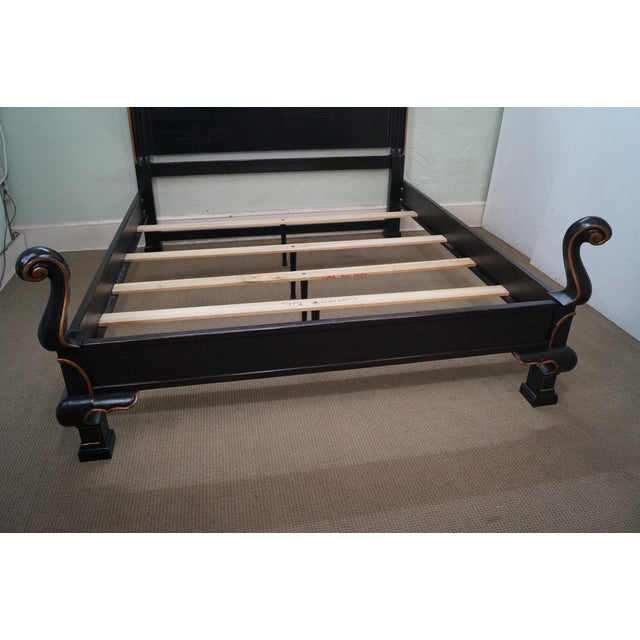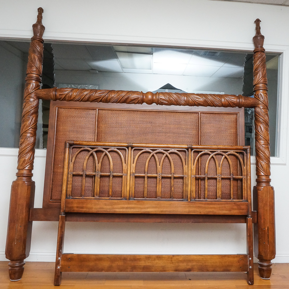 Drexel King Bed. Find here online price details of companies selling king bed. The headboard features a scalloped arched rail and carved crest, above inlaid squares of burled veneers.