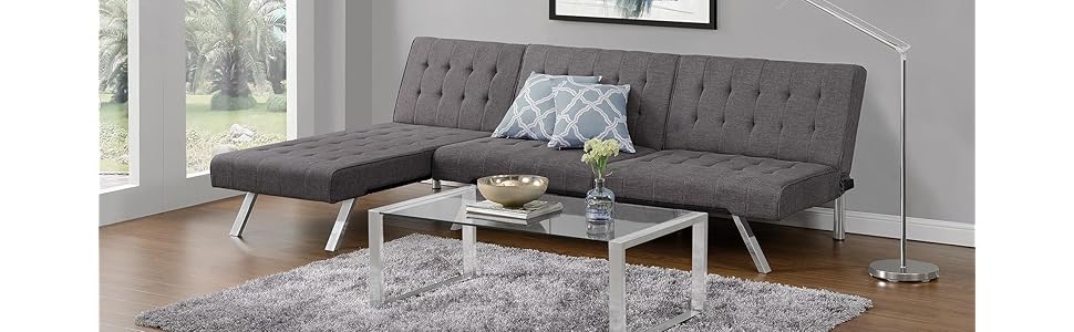 The tufted upholstery adds a classic touch and is available in thanks to the emily's convenient split back, you and your guest can easily adjust the futon to your comfort level—whether that's sitting up to chat or.