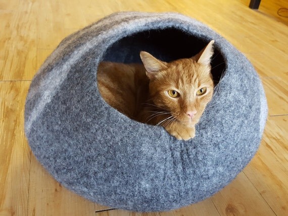 My ragdoll cats, charlie and trigg, have liked every cat cave we have been exposed to. Felted wool kitty with perky ears The cat cave is cozy bed for your cat.