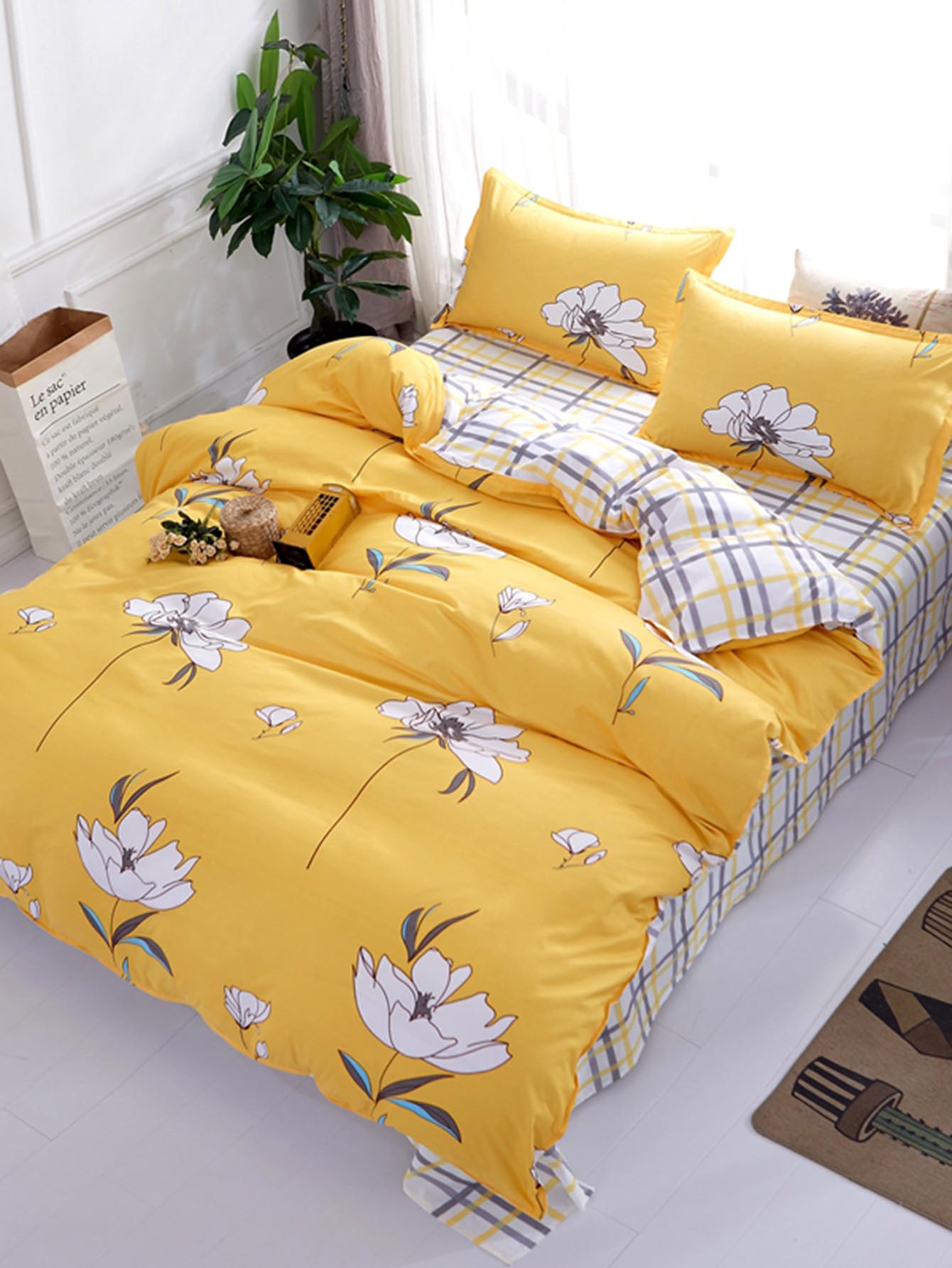 Bright Yellow Floral Print 3-Piece Cotton Bed in a Bag ... from s.beddinginn.com